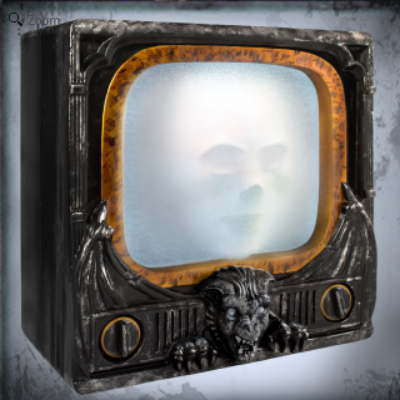 Tune in to Terror! When Activated, This Gothic Television Lights Up and Flickers with Static Sounds as a Terrifying Poltergeist Emerges From the Screen.